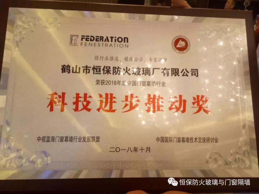 鶴山恒保公司在此次交流研討會中,獲大會專家評審并頒發2018年度中國門窗幕墻行業“科技進步推動獎”。