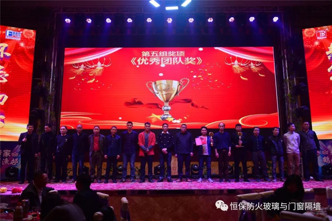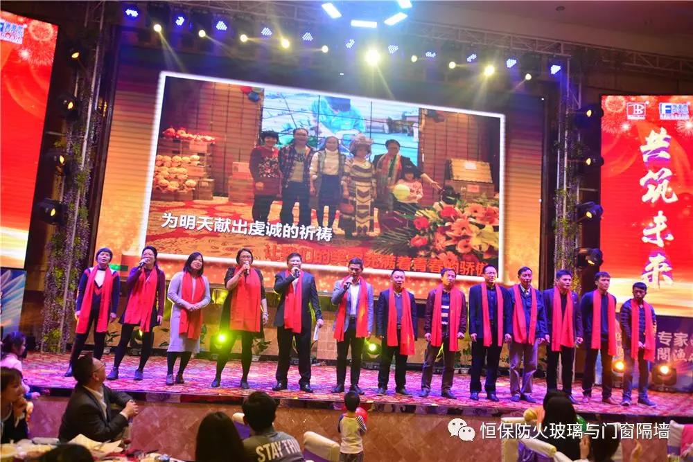 19:30分,恒保年會在鼓舞飛揚中拉開了帷幕,首先是恒保總經理陳沃林先生做年終致辭,陳總回顧了2018年所取得的成績與不足,并提出了2019年恒保要全力以赴,不忘初心,繼續奮斗,再創佳績的戰略方針。2018年是恒保跨越發展的一年。全體恒保家人,團結一心,艱苦奮斗,全力實現了公司既定的年度目標,同比各項重要指標增長逾80%。2018年我們大力引進新設備,開發新產品10多項,產品通過國家檢測20多項 ,至此,恒保出品已擁有37個3C認證,158份檢驗報告,成為行業內公認通過國家檢驗、認證最多的防火玻璃門窗企業;2018年在行業各類權威獎項評比中,榮獲“全國鋁門窗幕墻展 年度星品獎”、榮獲“新玻網 門窗玻璃十強企業”、陳沃林總經理榮獲鶴山市工商聯系統“工匠之星”稱號、陳沃林總經理榮獲第五屆中國玻璃行業“玻璃工匠”稱號、榮獲第三屆建筑門窗金軒獎“最具創新力配套產品”、榮獲第三屆建筑門窗金軒獎“最具發展潛力企業”、榮獲中國門窗幕墻行業“科技進步推動獎”等十多項獎項。2019年我們將持續優化各部門管理,提高員工工作技能、提高生產管理水平、提高生產效率、提高綜合管理能力,減少物料損耗,減少出錯率。加強精密型材、新型防火門窗的開發,滿足不同客戶的需求。2019年恒保上下一心、同心協力、不忘初心,共筑未來,為實現中國平安夢、世界平安夢繼續奮斗!